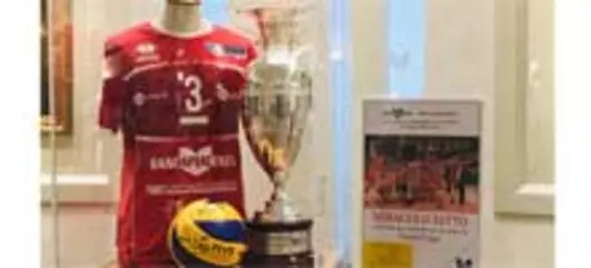 La coppa c'è sempre stata, esposta alla Banca di Piacenza Ora è stato aggiunto il cartello sulla promozione in SuperLega