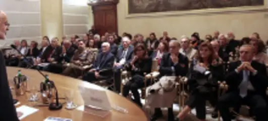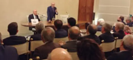 Pubblico numeroso a Palazzo Galli per l'intervento del presidente Abi Patuelli «La bussola del pensiero di Einaudi quantomai utile per orientarci in un contesto economico e sociale complesso»