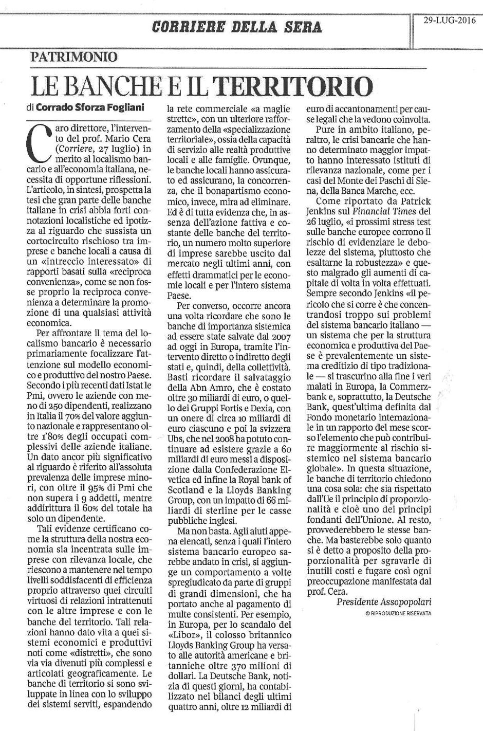 Articolo del Presidente Sforza Fogliani sul Corriere della Sera
