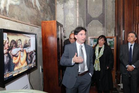 Un’affascinante e spettacolare panoramica, realizzata con una tecnica fotografica a 360 gradi, che offre ai visitatori ogni dettaglio degli affreschi grazie ad una galleria di milleduecento immagini ad altissima definizione frutto del lavoro del dott. Marco Stucchi, autore dell’opera di digitalizzazione dell’intero ciclo pittorico della cupola.