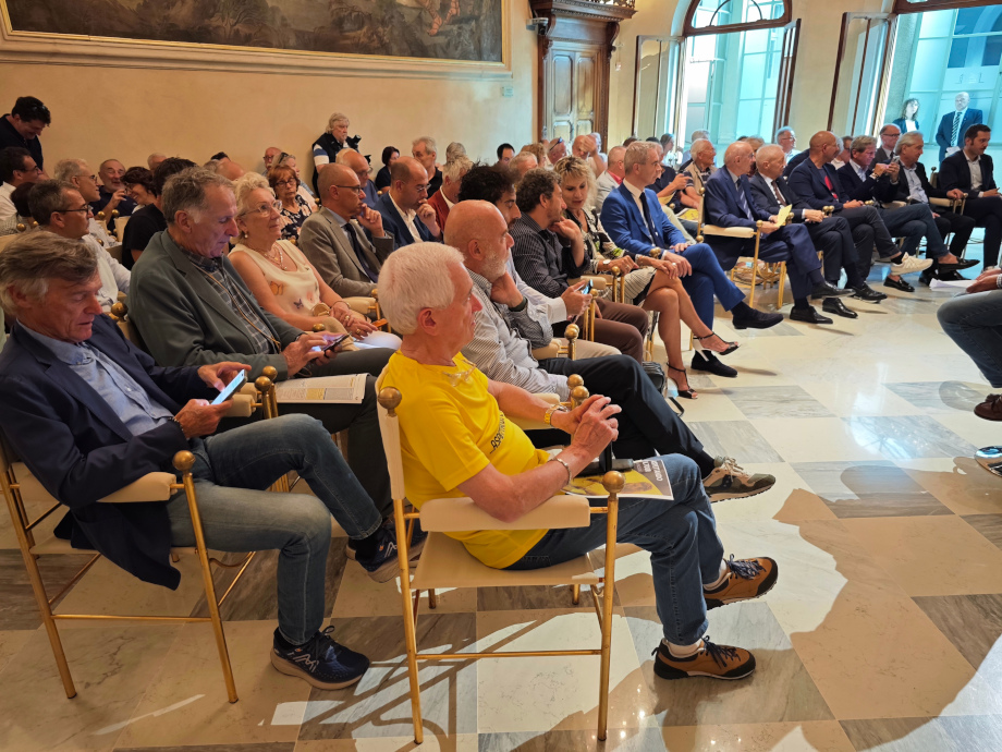 C’era tutta la rappresentanza di Rete Cultura Piacenza al PalabancaEventi (già Palazzo Galli), nel cuore del centro storico della città, dove scatterà la terza tappa del Tour de France 2024. Una prima fila a godere lo spettacolo live di un’intervista contro il tempo, contro l’ora, come piace a Francesco Moser, campione leggendario del ciclismo, intervistato da Dario Ceccarelli, firma del Sole24Ore.