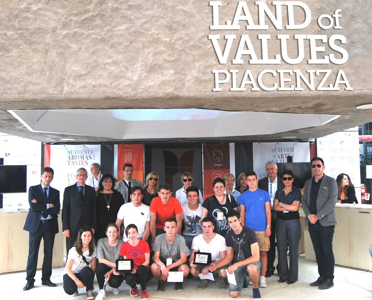 I sei studenti del Liceo Respighi – Riccardo Ipri, Simone Montanari, Davide Romiti, Davide Pappalardo, Luigi Sagner e Andrea Zannardi – e i quattro dell’Istituto Mattei di Fiorenzuola – Lisa Compiani, Domenico Marasca, Paola Piselli, Elisa Visigalli – sono infatti stati premiati alla Zolla piacentina, sotto l’ormai celebre scritta “Land of Values Piacenza”, con un buono per l’apertura di un libretto di risparmio; premio consegnato ai ragazzi dal responsabile della Direzione Mercati della nostra Banca, Gianfranco Pozzi, e dal responsabile dell’Ufficio Sviluppo, Renato Mannina. A festeggiare gli studenti piacentini nell’area della Zolla, erano presenti anche il Prefetto Anna Paolombi, il Presidente di CNA Piacenza, Dario Costantini, il Direttore Enrica Gambazza e il Presidente dell’ATS Piacenza per Expo, Silvio Ferrari.