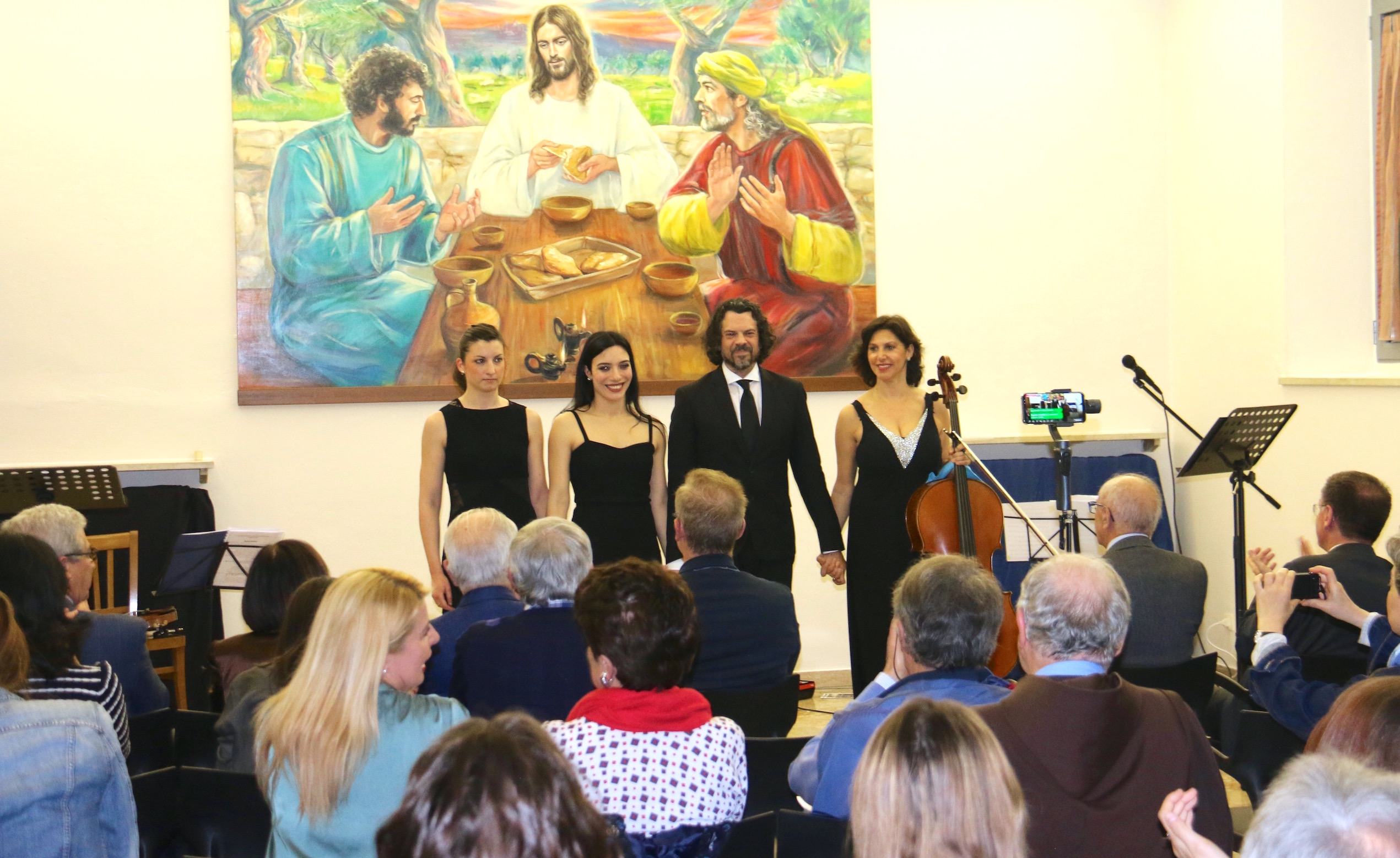 Sfogliando le pagine della “Gerusalemme liberata” di Torquato Tasso, Manni – voce recitante insieme a Marta Ossoli, con l’accompagnamento musicale di Silvia Mangiarotti (violino) e Francesca Ruffilli (violoncello) – ha innanzitutto ricordato il Concilio generale indetto a Piacenza nel 1095 da papa Urbano II in cui, per la prima volta, venne annunciata la Crociata da condurre in Terra Santa contro gli infedeli. Un balzo cronologico in avanti fino al 1522, anno in cui, su progetto di Alessio Tramello, venne iniziata la costruzione della fabbrica di S. Maria di Campagna proprio su quell’ampia area che aveva ospitato il Concilio. E poi ancora avanti fino al 1527, anno del tragico Sacco di Roma da parte dei lanzichenecchi – ripercorso tra le pagine della “Storia dei Papi” di Ludwig Von Pastor e della “Storia d’Italia” di Francesco Guicciardini – con il ricordo di papa Clemente VII che, di fronte alle barbarie e alle devastazioni, affidò la propria anima alla venerata Madonna di Campagna.
